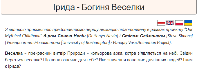 We are pleased to present two activities (in English: Paint the Muses! and Iris – the Rainbow Goddess) that have been translated into Ukrainian by Olha Kolesnyk. More coming soon!