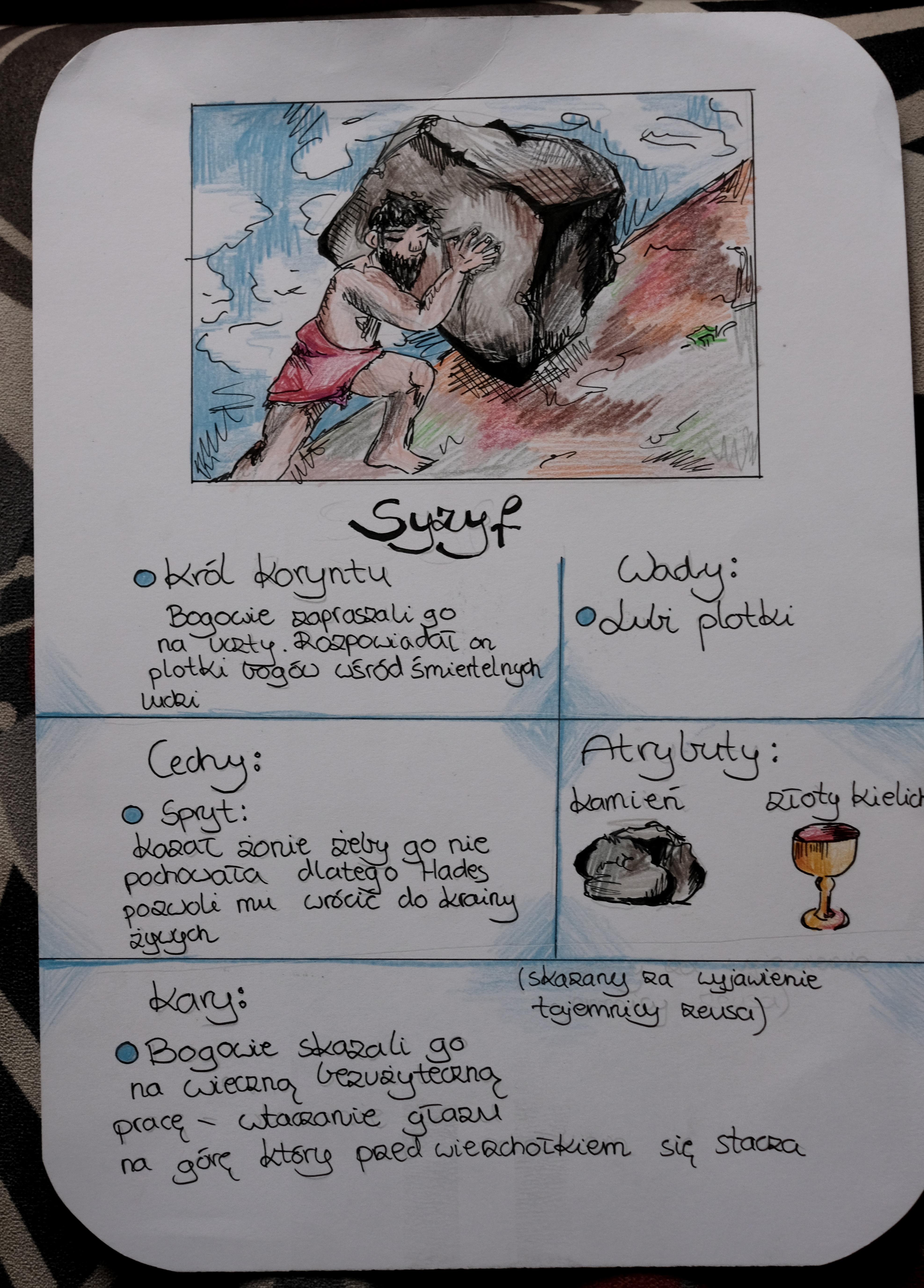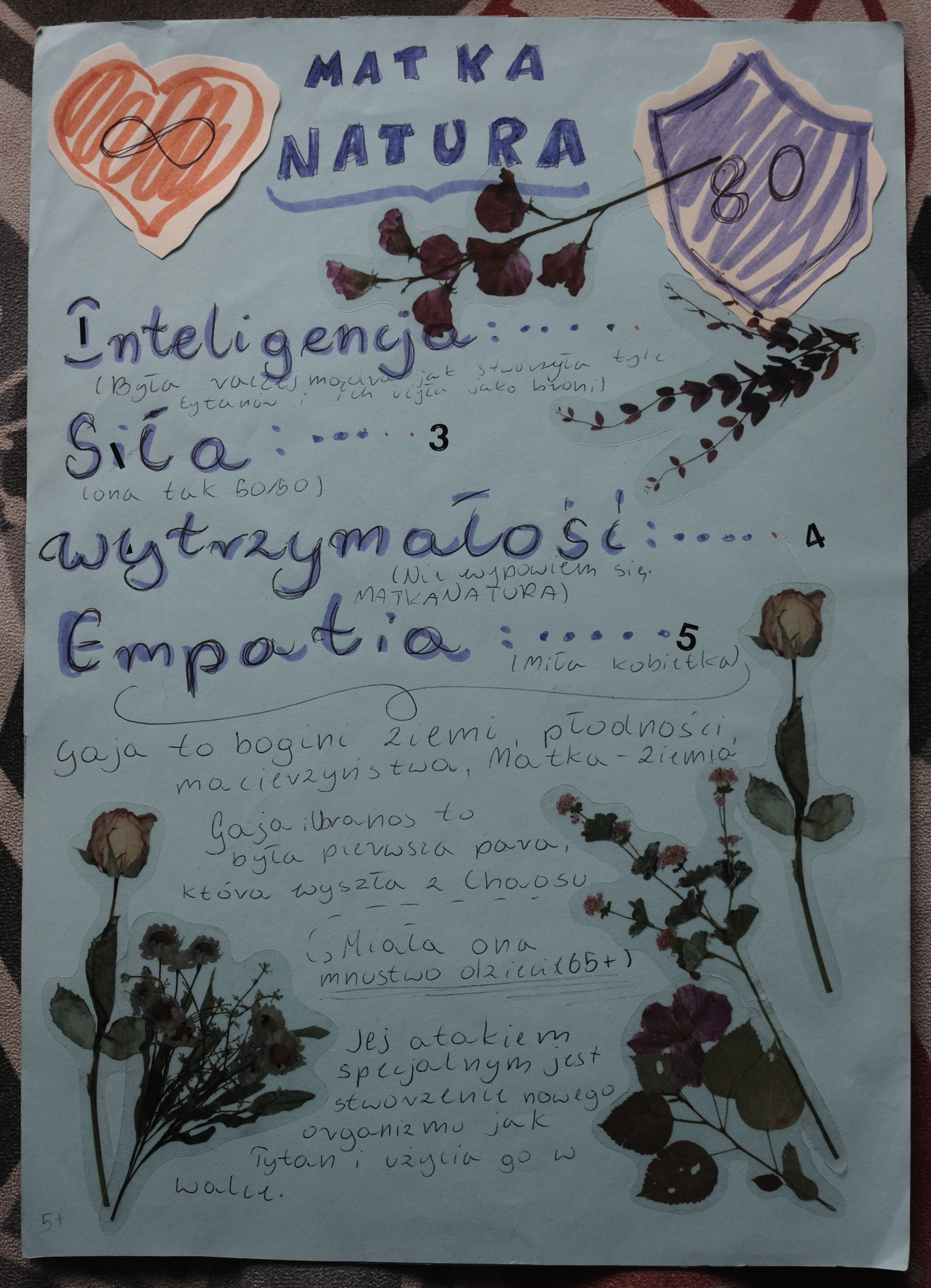 Another challenge for the students was to prepare cards of characters they chose – some of them are in the pictures. The essence of the task was to process the information on the discussed characters in the attractive and familiar to the students form modelled on role-playing games that many of them enjoy.