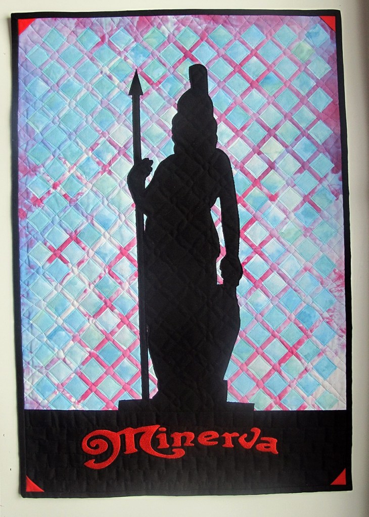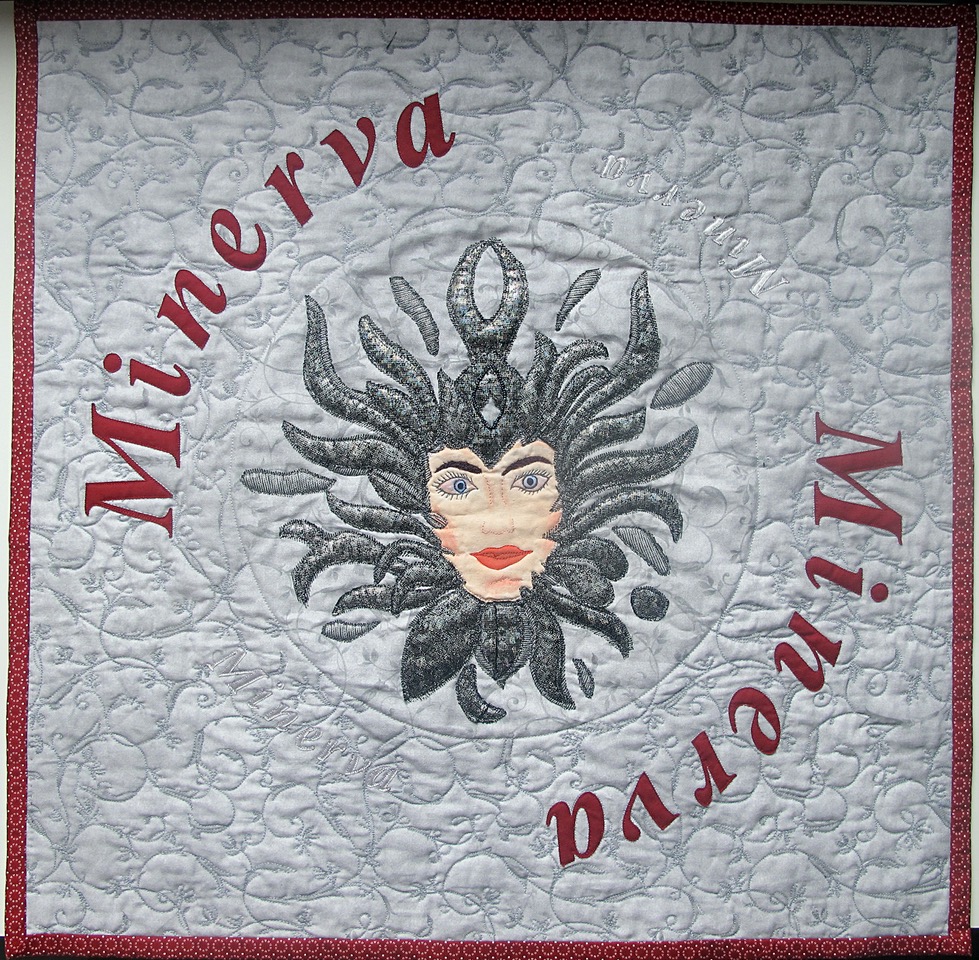Minerva was the main theme of the recent patchwork competition: “Minerva – bogini rzemiosła” [Minerva – The Goddess of Crafts] organized by Stowarzyszenie Polskiego Patchworku [Polish Patchwork Association] together with the distributor of Minerva sewing machines. The first “Minerva” was created in Austria in 1871, during the second wave of the industrial revolution. It was adorned with an image of the goddess and the motto “MELIORA SUNT BONO INIMICA”.