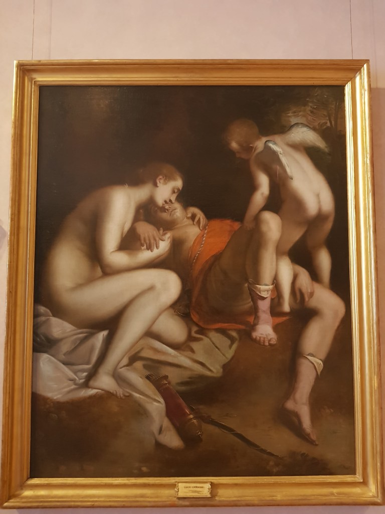 Venus can be, however, even more familiar to us. It is because, despite being the goddess, she experienced a heavy loss. According to Ovid’s Metamorphoses another lover of Venus was Adonis [2]. Unfortunately, the beautiful young man got heavily wounded by the wild boar during the hunt. As a consequence, he bled to death in Aphrodite’s arms. In Palazzo Barberini, which houses a magnificent collection of paintings, we find a work which refers to this myth. It is a painting by Luca Cambiaso, a 16th-century artist. Lying Adonis is almost dead, his eyes are barely open. Venus is sitting next to him, tenderly embracing his head. The naked goddess is very beautiful but the most striking is her visible pain caused by the loss which is so familiar to every human being.