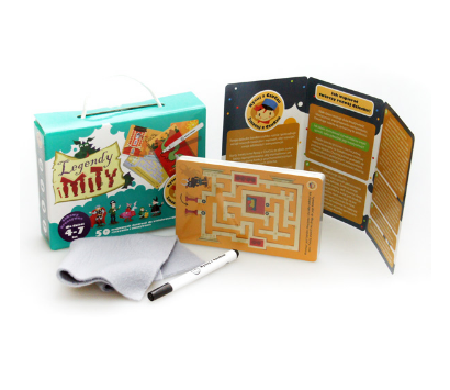 In the set children can find 25 activity cards (containing 50 different illustrations) and an erasable pen, so they can try to solve all the tasks as many time as they want. While playing, they will be able to learn (inter alia) about the famous myths and mythological monsters. On one of the illustrations below we can see the task related to the Minotaur’s Labyrinth: